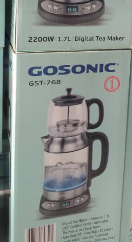 - چای ساز دیجیتال - کتری بدون سیم با چرخش ۳۶۰ - دمای قابل تنظیم - عملکرد گرم نگه دار - دارای چراغ LED آبی داخل کتری - کتری مدرج - محفظه نگهداری سیم برق - خاموش شدن خودکار