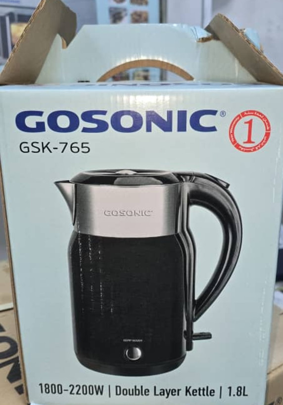 کتری برقی مدل GSK-765 یک کتری برقی از برند گوسونیک است که دارای ویژگیهای زیر است: توان مصرفی 2200 وات، ظرفیت 1.8 لیتر، بدنه استیل ضد زنگ، قابلیت گرم نگهدارنده و سیستم قطع خودکار، و قابلیت چرخش 360 درجه.